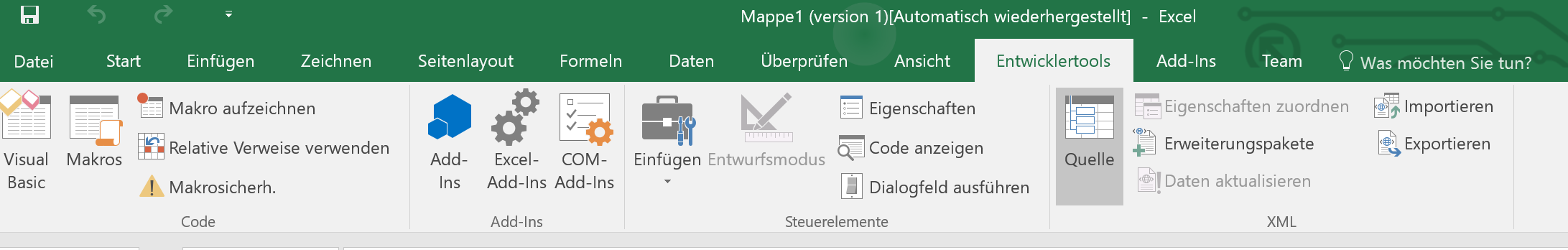 Entwicklertools Menü in Microsoft Excel einblenden