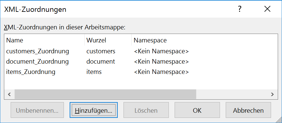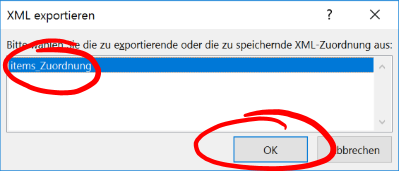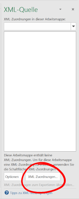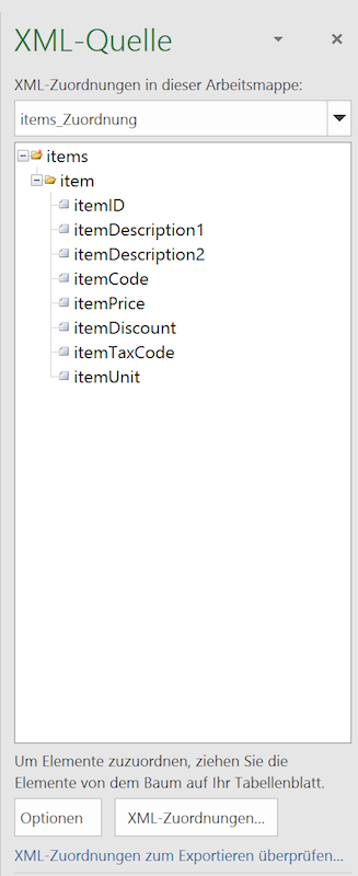* Ihr XML-Zuordnungsfenster sollte jetzt in etwa so aussehen: