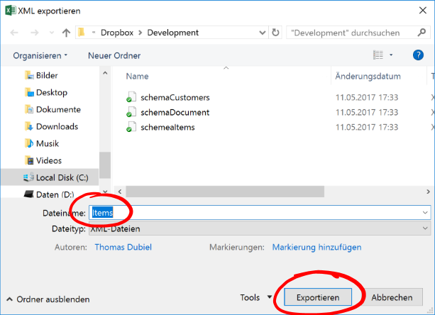 XML Schema für den Import und Export von XML Dateien installieren