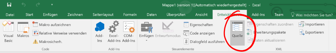 Die einfachste Form Daten in einer XML Datei zu speichern ist die Erfassung in Microsoft Excel® und der Export dieser Daten als XML Struktur. Leider bietet Microsoft Excel® keine direkte Möglichkeit eine Tabelle als reine XML Datei zu speichern. Die dafür notwendigen Schritte sind in diesem Wiki zusammengefasst. Ich verwende dazu die Version Microsoft Office® 365. Die einzelnen Punkte können sich in den verschiedenen Versionen etwas unterscheiden, aber die generelle Vorgehensweise bei allen Versionen ist folgende: