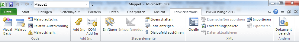 Entwicklertools Menü in Microsoft Excel einblenden