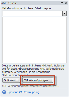 * Klicken Sie auf die Schaltfläche „XML-Verknüpfung“ im angezeigten Fenster „XML-Quelle“