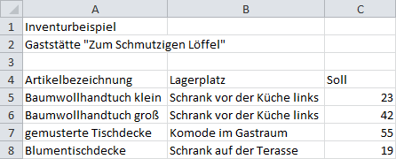 In meinem Beispiel verwende ich folgende Daten:
