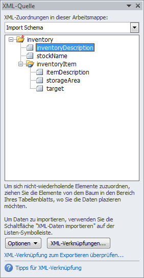 XML Schema in einer Arbeitsmappe für Exportierte Inventuren in Microsoft Excel verwenden