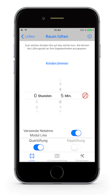 Sollten alle Berechnungen und automatischen Anpassungen nicht Ihren Vorstellungen entsprechen, ändern Sie die Lüftungszeit einfach manuell. Stellen Sie den Wert ein, den Sie wünschen.